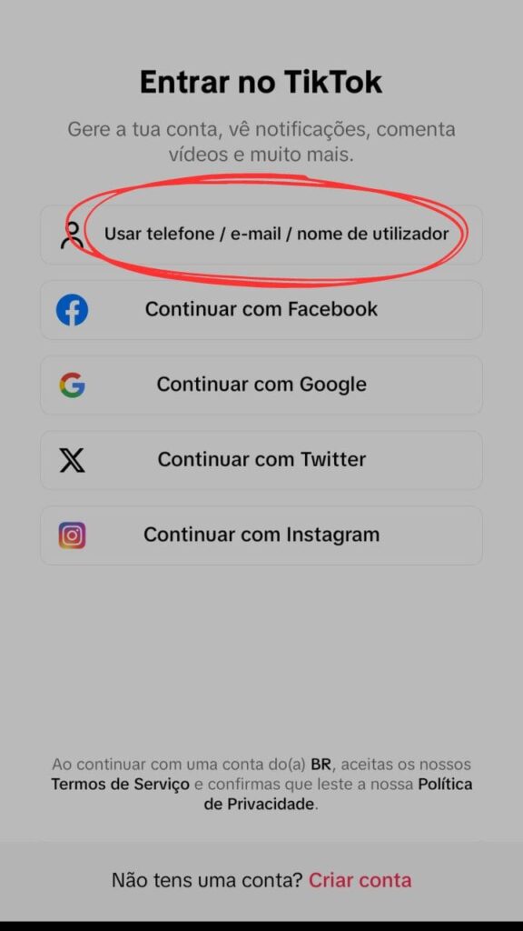 – Escolha se você quer receber um código de verificação por SMS ou e-mail e digite o número de telefone ou o endereço de e-mail associado à sua conta do TikTok.
