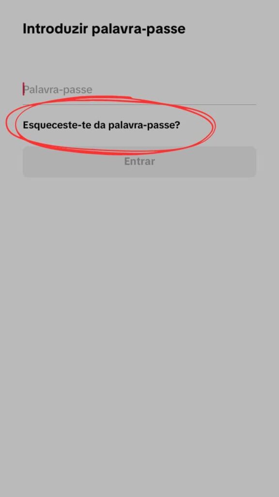 – Toque em “Entrar com número de telefone ou e-mail” e depois em “Esqueceu a senha?”.